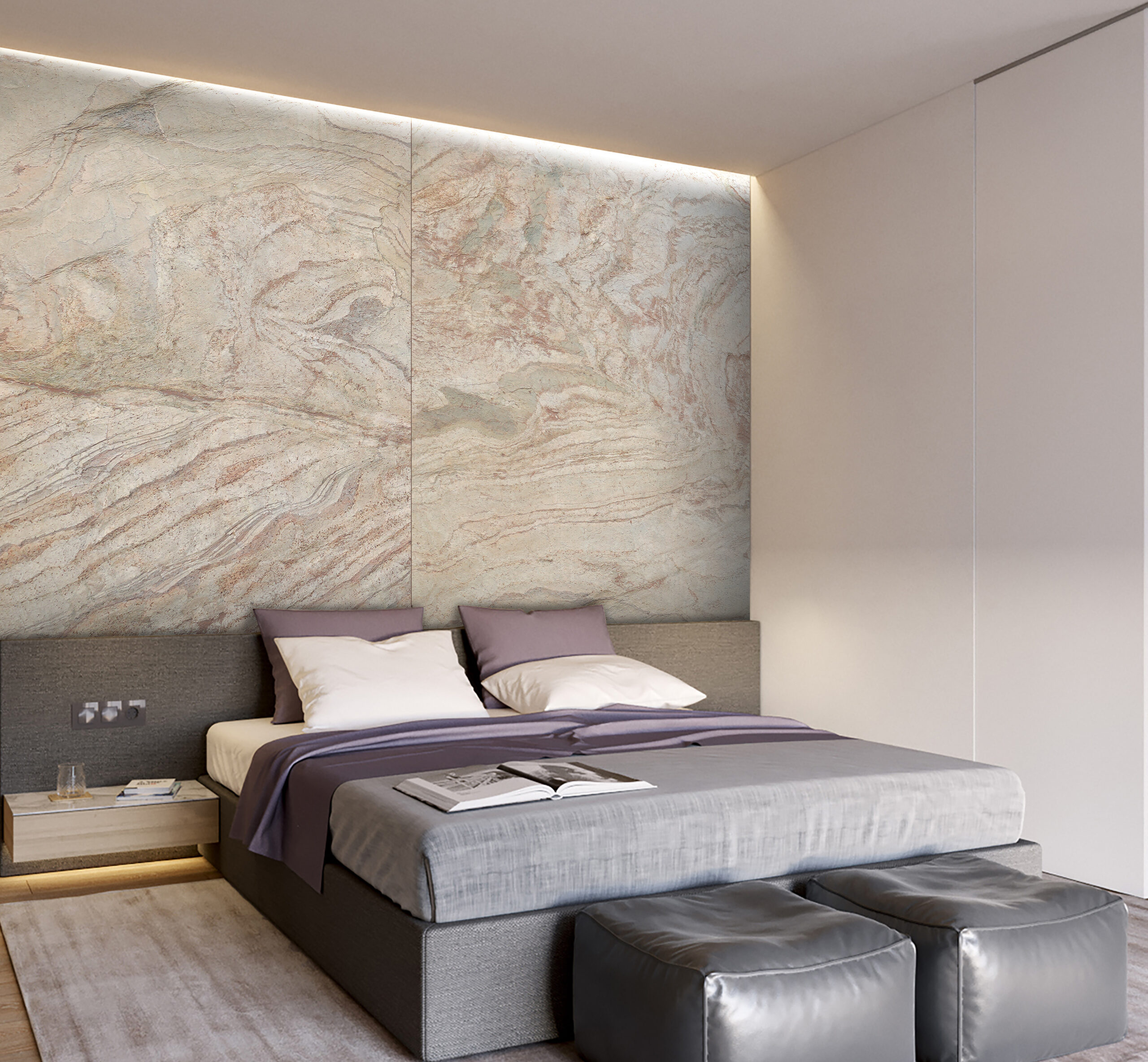 Copper Flexstone is a striking natural stone veneer with warm metallic tones that instantly add luxury and character to any space. Its surface blends shades of burnt copper, amber, gold and deep brown, with subtle natural movements that catch the light beautifully. Each ultra-thin sheet is made from real stone with a flexible backing, making it lightweight, easy to cut and simple to install on walls, furniture and custom designs.