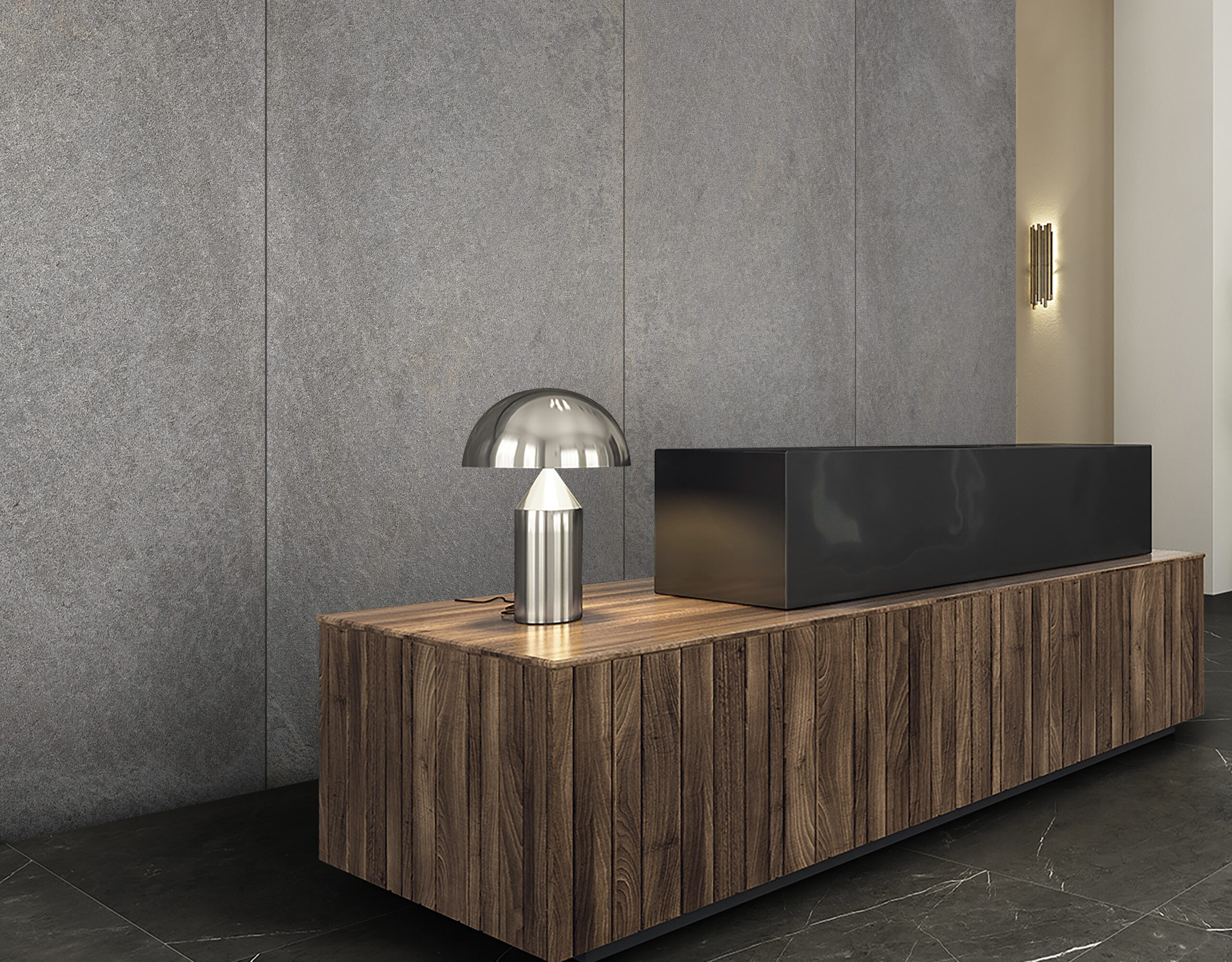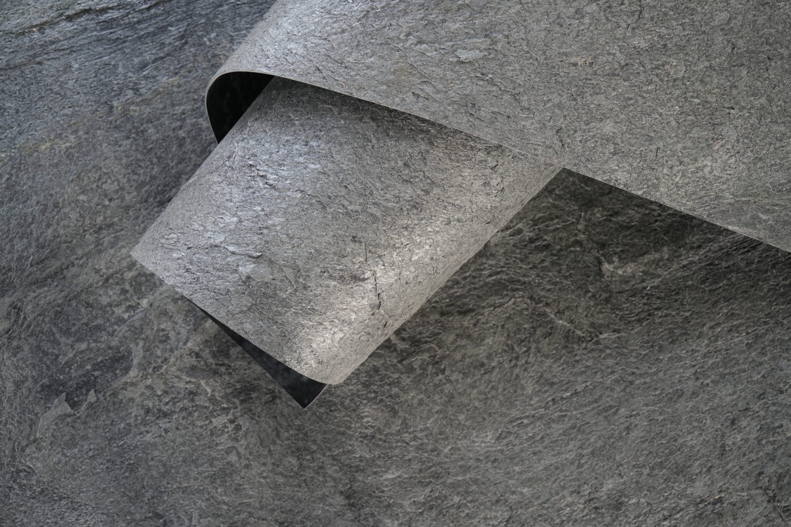 Silver Galaxy Flexstone is a dramatic, contemporary stone veneer with a deep charcoal base and shimmering silver highlights, reminiscent of a starry night sky. The natural stone surface shows subtle movement and metallic reflections, giving walls and furniture a refined, high-impact look. Each ultra-thin sheet is made from real stone with a flexible backing, making it lightweight, easy to cut and simple to install on many different surfaces.